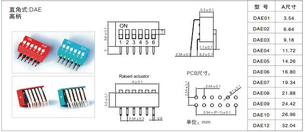 紅藍撥碼開關很多款型號,按照腳位來區分有直插式(DIP) 和貼片式(SMD)之分,按照撥動的方式來分有平撥跟側撥之分,按照腳間距有2.54mm和1.27mm腳間距之分,按照顏色有黑色,紅色,藍色的區別。根據狀態來說還有兩態跟三態之分。根據位數來說正常是都是1-10位、12位等11個位數。其實細分下來,還有很多種。